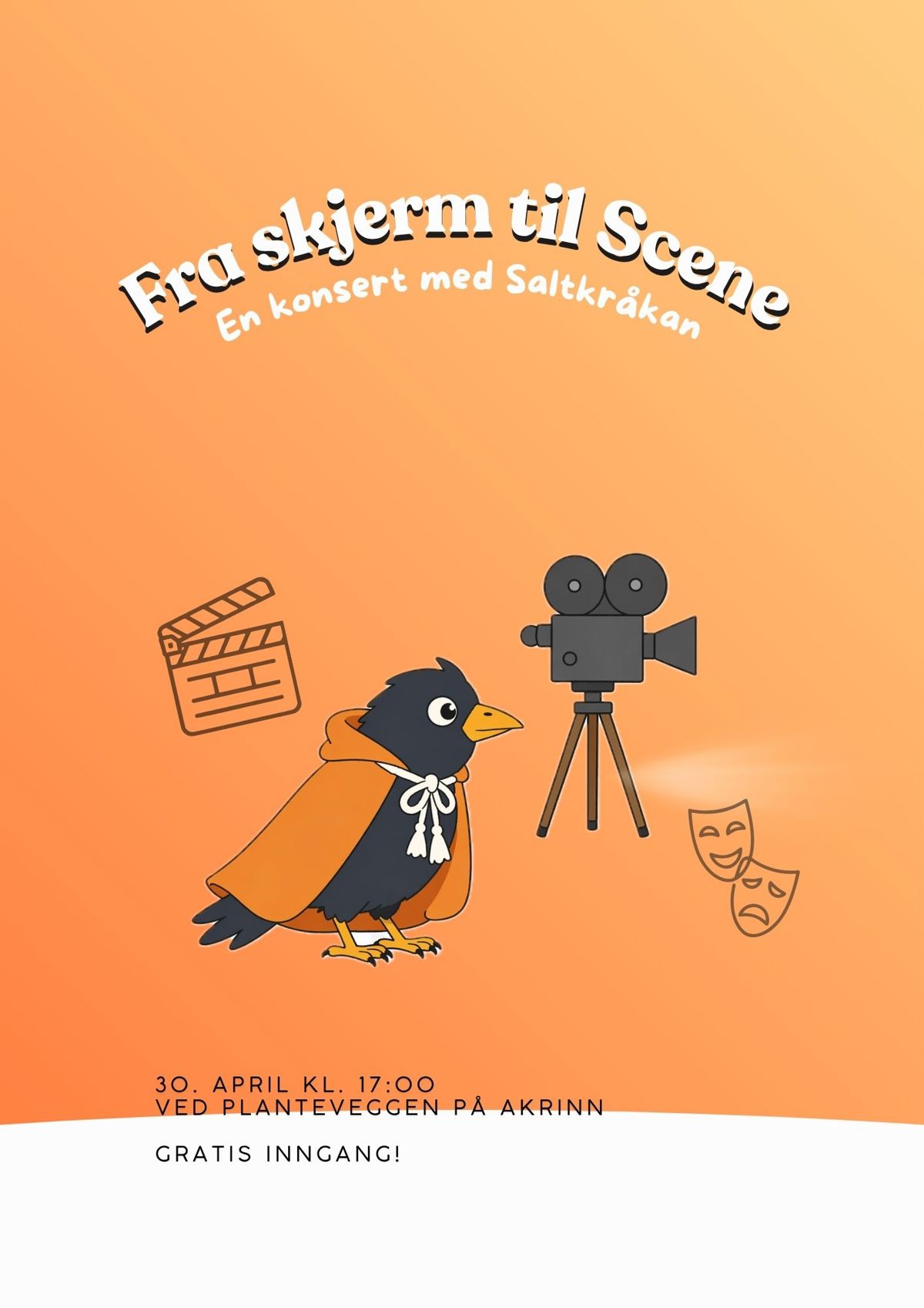 Fra skjerm til scene🎬✨Vi gleder oss til vårkonsert med Saltkråkan!🎶30. April klokken 17.00 ved Planteveggen på Akrinn☀️🌿Håper vi ser deg der!